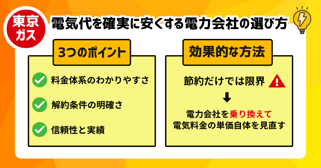 電力会社を選ぶ際は、次の3つのポイントを確認することで、乗り換え後のトラブルや後悔を防げます。