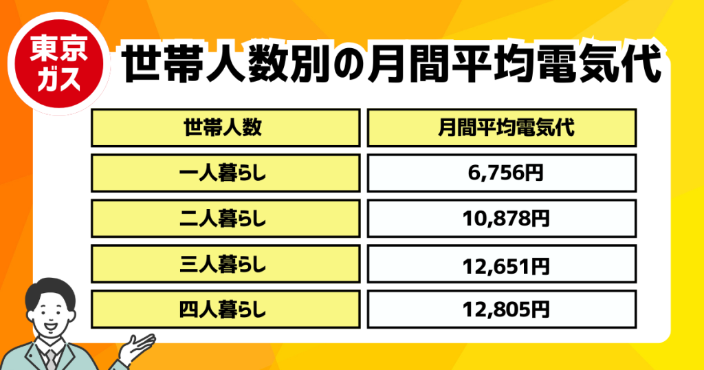 自身の電気代が高いかもしれないと感じている方は、まずは世帯別の一般的な平均額と比べてみましょう。
