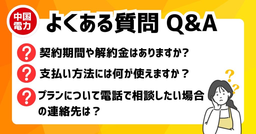 最後に、中国電力の料金プランに関してよく寄せられる質問とその回答をまとめました。