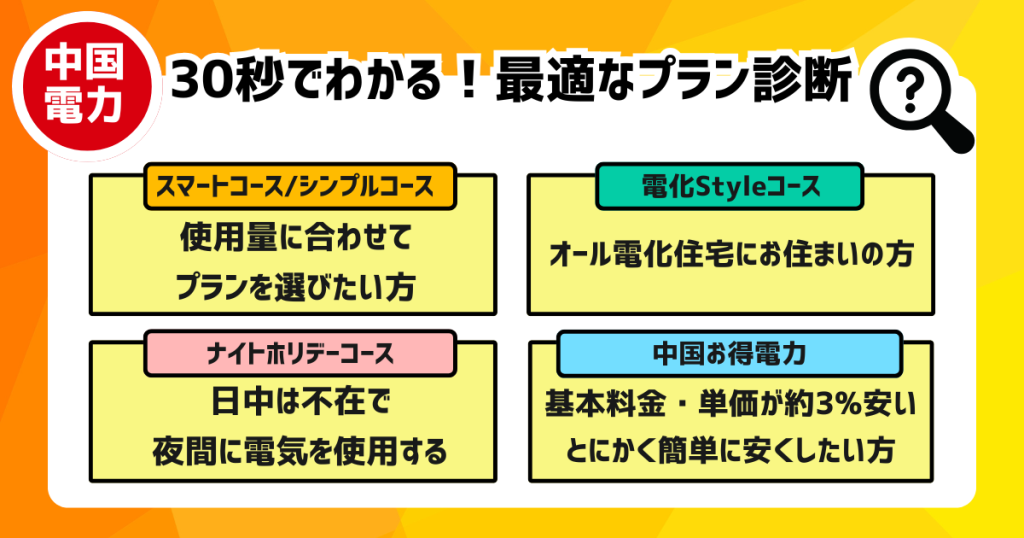 中国電力には、ライフスタイルに合わせて選べる料金プランが複数用意されています。