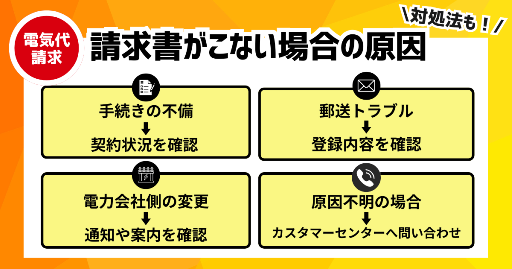 万が一請求が届かない場合は、契約状況の確認や電力会社へ問い合わせてみてください。