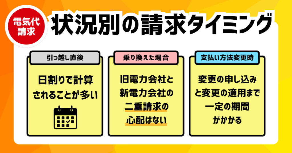 電気代の請求タイミングは、普段の生活の中だけではなく、引っ越しや契約変更といった特別な状況においても気になる事柄です。