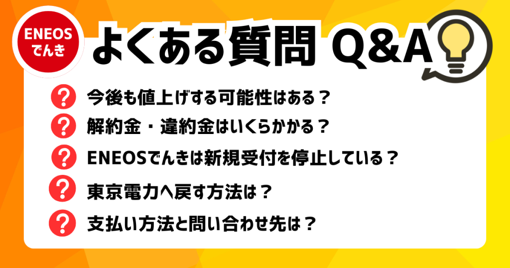 ここでは、ENEOSでんきに関するよくある質問とその回答を詳しく解説します。契約を検討している方も、すでに利用中の方も、参考にしてください。