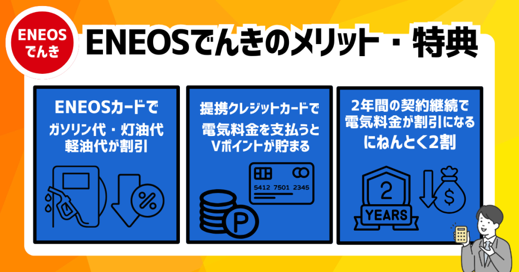 ここでは、ENEOSでんきの主なメリットについて詳しく解説します。