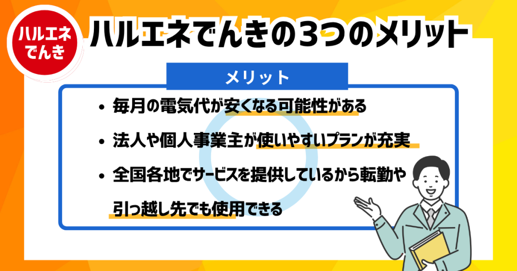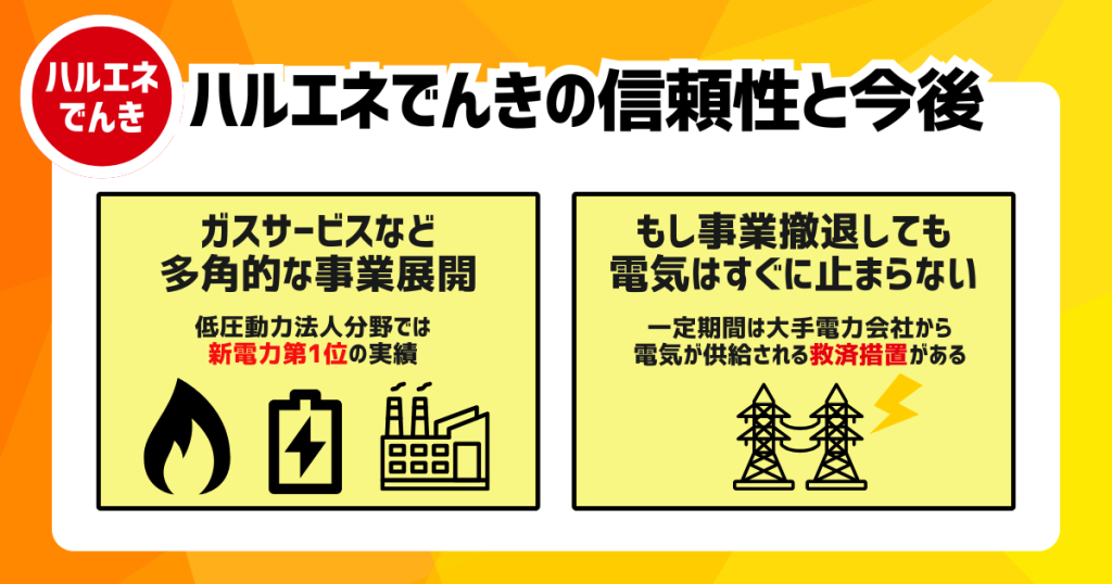 ハルエネでんきは、法人向けの実績が豊富で、条件が合えばメリットのある電力会社です。