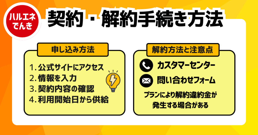 ここでは、ハルエネでんき(ハルとくでんき)の申し込みや解約の手続き方法について、具体的な手順と注意点を解説します。