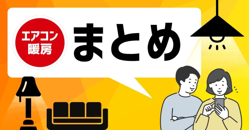 結論として、部屋全体を暖める効率はエアコンが優れていますが、使うシーンによってほかの器具と使い分けることが、トータルの電気代節約につながります。