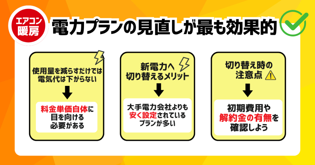 エアコンの設定温度を見直したり、こまめに掃除をしたりといった節約術は大切ですが、電気代を大幅に下げることには限界があります。