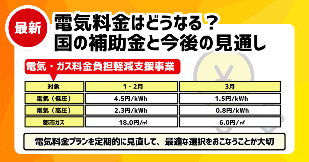 2026年4月以降の支援継続については未定のため、支援がなくとも家計を守ることができるように、自身の電気料金プランを定期的に見直して、最適な選択をおこなうことが大切です。