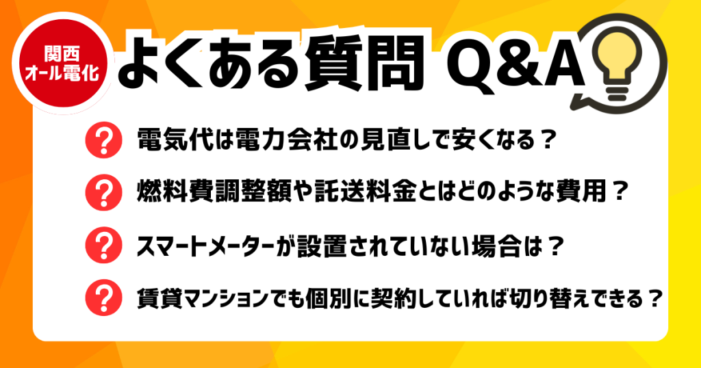 本章では、関西エリアのオール電化の電力会社選びに関するよくある質問に回答します。