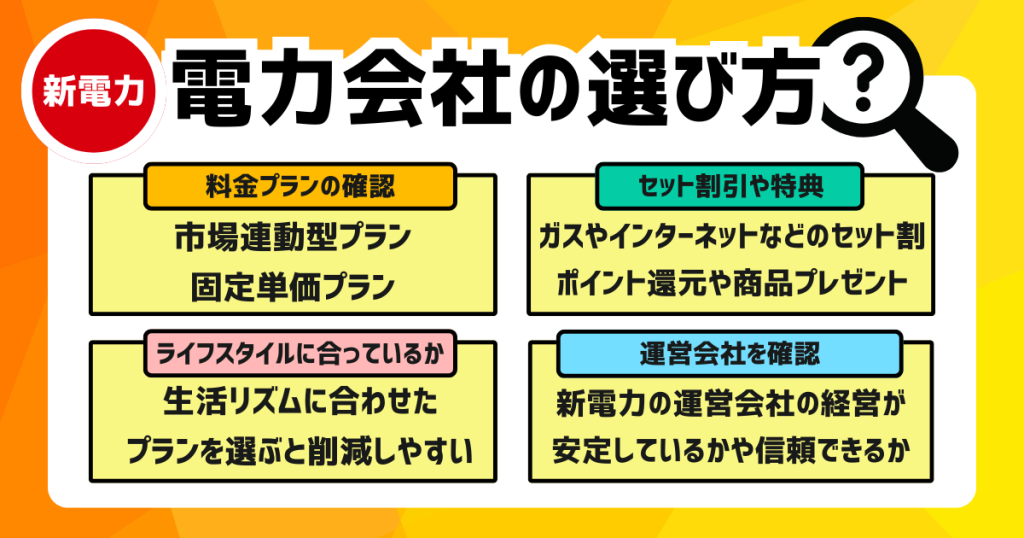 新電力会社を選ぶ際には、料金プランやセット割引、口コミを参考にしつつ、本当にお得かどうかを慎重に検討することが大切です。
