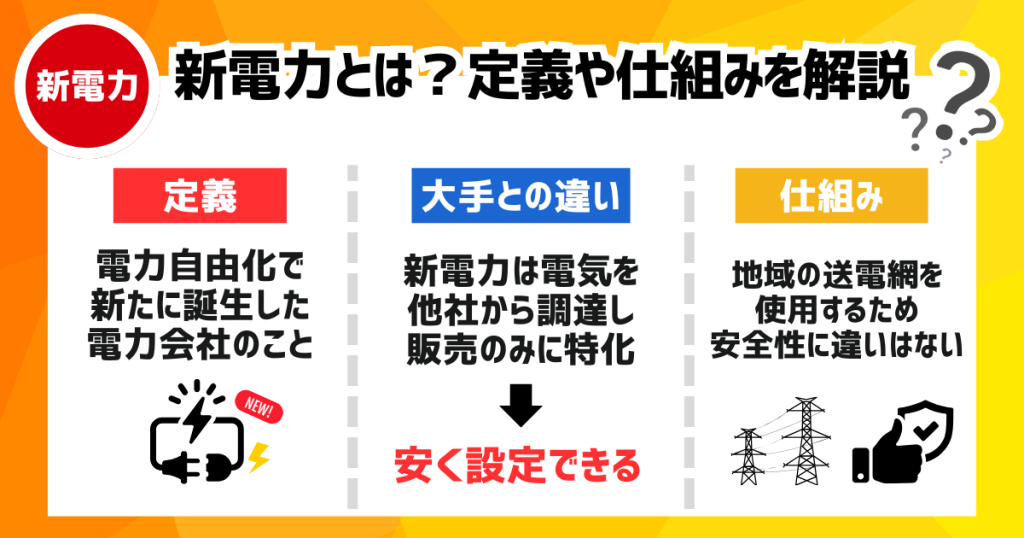そもそも新電力がどのような仕組みになっているのか、次の3つの項目に分けて解説します。